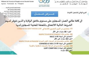 وزارة العمل والتشغيل والضمان الاجتماعي الوكالة الوطنية للتشغيل الفرع الولائي للتشغيل الأغواط عرض عمل ads الى كافة طالبي العمل المسجلين على مستوى ملاحق الولاية والذين تتوفر لديهم الشروط التالية الالتحاق بالملحقة المحلية المسجلين لديها: 01 مفتشين مراقبين للتصوير الإشعاعي COFREND OU ASNT NIVEAU 2/RT …