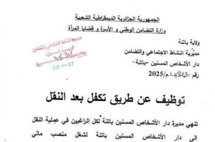 توظيف عن طريق تكفل بعد النقل بدار الأشخاص المسنين باتنة