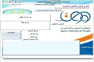 وزارة العمل والتشغيل والضمان الاجتماعي الوكالة الوطنية للتشغيل الفرع الولائي للتشغيل بالحلفة الملحقة المحلية للتشغيل بالحلفة ads عرض عمل – المؤسسة المستخدمة: البنك الوطني الجزائري BNA – القطاع القانوني: عام – عدد المناصب: 01 – شروط العرض: شهادة في الإختصاص – تاريخ العرض: 2025/09/08 …