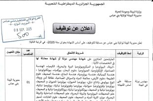 اعلان عن توظيف بمديرية البيئة لولاية بني عباس