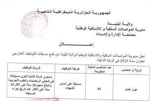 أكمل القراءة »إعلان عن توظيف بمديرية المواصلات السلكية واللاسلكية الوطنية لولاية البليدة