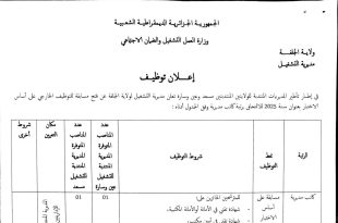 أكمل القراءة »إعلان توظيف بمديرية التشغيل لولاية الجلفة