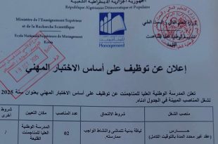 أكمل القراءة »إعلان عن توظيف بالمدرسة الوطنية العليا للمناجمنت