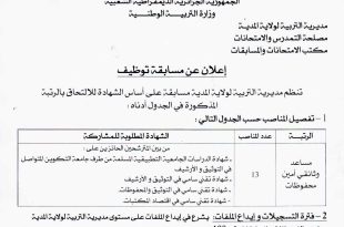 أكمل القراءة »إعلان عن فتح مسابقة توظيف بمديرية التربية