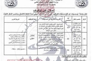 أكمل القراءة »اعلان عن فتح مسابقات توظيف بجامعة تيسمسيلت