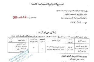 أكمل القراءة »إعلان عن توظيف بالمعهد التكنولوجي المتخصص للتكوين في الفلاحة الصحراوية