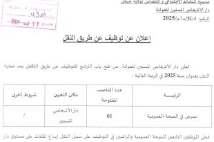 وزارة التضامن الوطني و الأسرة و قضايا المرأة مديرية النشاط الاجتماعي و التضامن لولاية جيجل دار الأشخاص المسنين للعوانة ads بتاريخ 17 أوت 2025 إعلان عن توظيف عن طريق النقل تعلن دار الأشخاص المسنين للعوانة، عن فتح باب الترشح للتوظيف عن طريق التكفل بعد …