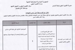 اعلان عن توظيف مركز التكوين المهني والتمهين بكوينين لولاية الوادي ads يعلن مركز التكوين المهني والتمهين بكوينين لولاية الوادي عن فتح مسابقة توظيف في الرتب المبينة ادناه نائب مقتصد مسير لمؤسسات التكوين والتعليم المهنيين عدد المناصب 01 منصب نمط التوظيف: مسابقة على اساس الشهادة …