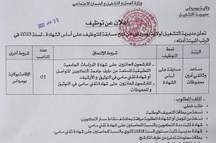 أكمل القراءة »اعلان عن توظيف بمديرية التشغيل لولاية بومرداس
