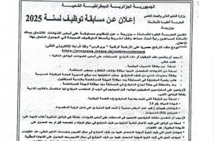 أكمل القراءة »إعلان عن مسابقات توظيف للالتحاق بسلك الاساتذة المساعدين رتبة: استاذ مساعد اوت 2025