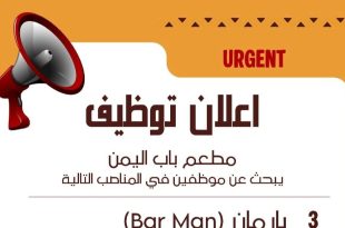 عاجل (URGENT) إعلان توظيف ads مطعم باب اليمن يبحث عن موظفين في المناصب التالية 3 بارمان (Bar Man) 15 نادل (Serveurs) 2 عاملات نظافة 4 غسّالي صحون (Plongeurs) 2 Caissiers على المهتمين التفضل بالحضور إلى المطعم مصحوبين بالسيرة الذاتية الخاصة بهم 0542 48 48 …