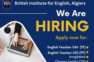 اعلان عن توظيف المعهد البريطاني للغة الإنجليزية بالجزائر العاصمة ads BIE British Institute for English, Algiers We Are HIRING Apply now for: English Teacher CDI (FT) English Teacher CDI (PT) Invigilators. Cleaner (male) CDD. Contact Us receptionebi-e.org 044 19 00 13 or 0793 60 …