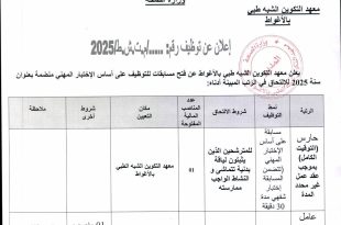 أكمل القراءة »اعلان عن توظيف بمعهد التكوين الشبه طبي 2025
