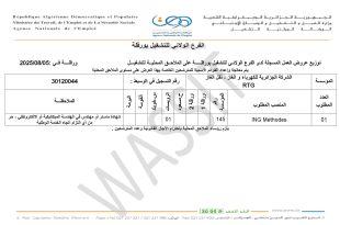 وزارة العمل و التشغيل و الضمان الاجتماعي الوكالة الوطنية للتشغيل الفرع الولائي للتشغيل بورقلة عرض العمل ورقلة في: 2025/08/05 ads المؤسسة الشركة الجزائرية للكهرباء والغاز – نقل الغاز RTG المنصب المطلوب: ING Méthodes العدد المطلوب: 01 المدة: غير محدد : شهادة ماستر أو مهندس …