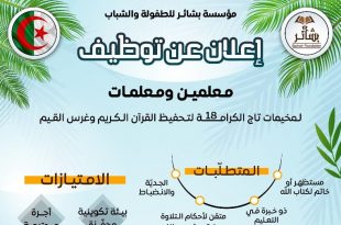 أكمل القراءة »إعلان عن توظيف بمؤسسة بشائر للطفولة والشباب الجزائر العاصمة