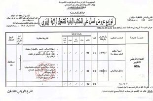 الجمهورية الجزائرية الديمقراطية الشعبية وزارة العمل والتشغيل والضمان الاجتماعي الوكالة الوطنية للتشغيل ads إيليزي في 2024-04-18 إلى السيد والي ولاية إيليزي . ( عرض حال). توزيع عروض العمل على المكاتب البلدية للتشغيل لولاية ايليزي السلام في الوجية. الفرع الولائي للتشغيل – إيليزي الرقم: 24161 …