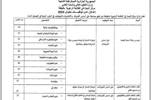 اعلان عن توظيف مركز البحث في الفلاحة الرعوية الجلفة ads يعلن مركز البحث في الفلاحة الرعوية الجلفة عن فتح مسابقة توظيف في الرتب المبينة ادناه مهندس دولة لدعم البحث عدد المناصب 14 نمط التوظيف: على اساس الشهادة مكلف بالاعلام العلمي والتكنولوجي من المستوى الثاني …