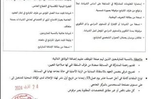 عرض عمل بالتعويض أي امكانية التوجيه من مختلف الملاحق اذا توفرت الشروط بمؤسسة Cosider TP pole 153 بالملحقة المحلية للتشغيل بالماء الابيض لمنصب الاتية : – ingénieur travaux publics – ingénieur en génie civil – Ts laboratoire en matériaux de construction تلغرام مسابقات التوظيف …