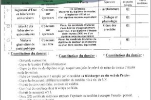 اعلان عن توظيف المدرسة الوطنية العليا للري بالبليدة ads تعلن المدرسة الوطنية العليا للري بالبليدة عن فتح مسابقة توظيف في الرتب المبينة ادناه مهندس دولة للمخابر الجامعية عدد المناصب 02 منصب نمط التوظيف: مسابقة على اساس الاختبار ملحق للمخابر الجامعية عدد المناصب 01 منصب …
