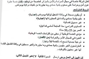 عرض عمل شركة خاصة في مجال الحراسة والأمن بالجزائر العاصمة ads عرض عمل خاص بولاية بومرداس فقطتعلن شركة خاصة في مجال الحراسة والأمن بالجزائر العاصمة عن توظيف (15) خمسة عشرةعون أمن وحراسة على مستوى بلدية حمادي وما جاورها من بلديات بولاية بومرداس.شروط المترشح:ه أن …