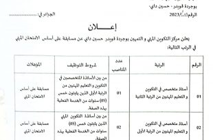 اعلان عن توظيف بمركز التكوين المهني والتمهين بوجردة قويدر الجزائر العاصمة