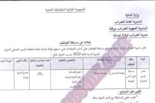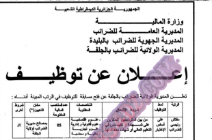أكمل القراءة »اعلان عن توظيف بمديرية الضرائب لولاية غرداية