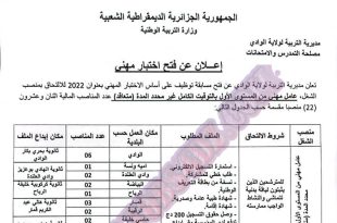 أكمل القراءة »اعلان عن توظيف بمديرية التربية لولاية الوادي
