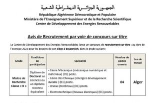 اعلانات توظيف الولايات المعنية: الجزائر العاصمة، بومرداس، قسنطينة، برج بوعريريج، باتنة، تلمسان يرجى من المهتمين التقرب من الادارة المعنية بالعرض او الملحقة المحلية للتشغيل حسب طبيعة الاعلان ads اعلان عن توظيف مركز تنمية الطاقات المتجددة CDER الجزائر يعلن مركز تنمية الطاقات المتجددة CDER عن …