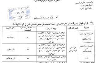 أكمل القراءة »اعلان عن توظيف بمديرية الادارة المحلية لولاية وهران
