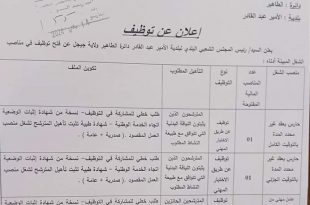 أكمل القراءة »اعلان عن توظيف ببلدية الرقيبة ولاية الوادي