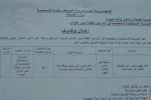 أكمل القراءة »اعلان عن توظيف بالمؤسسة الاستشفائية المتخصصة في الامراض العقلية بسور الغزلان البويرة
