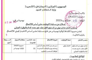 أكمل القراءة »اعلان عن توظيف بمديرية الثقافة لولاية بومرداس