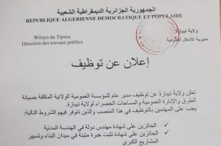 أكمل القراءة »اعلان عن توظيف ببلدية حجرة النص ولاية تيبازة