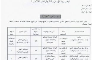 أكمل القراءة »اعلان عن توظيف ببلدية بئر العاتر ولاية تبسة