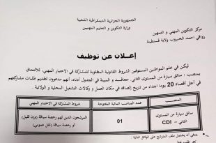 أكمل القراءة »اعلان عن توظيف بمركز التكوين المهني والتمهين بشروين تيميمون