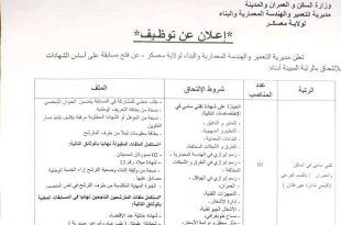 أكمل القراءة »إعلان عن توظيف بمديرية التعمير والهندسة المعمارية والبناء لولاية معسكر