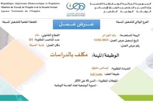 الملحقة المحلية للتشغيل المسيلة عرض عمل بنك الجزائر ads تعلن الملحقة المحلية للتشغيل بالمسيلة عن عرض عمل ببنك الجزائر Bank Of Algeria كما هو موضح ادناه الهيئة المستخدمة بنك الجزائر Bank Of Algeria المناصب المطلوبة امين مديرية عدد المناصب: 01 مكلف بالدراسات عدد المناصب: …