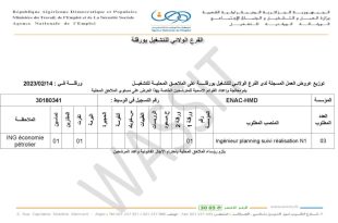 الفرع الولائي للتشغيل ورقلة عرض عمل ads المؤسسة الوطنية للأشغال البترولية الكبرى GTP-HMD يعلن الفرع الولائي للتشغيل بورقلة عن توفر عرض عمل بالمؤسسة الوطنية للأشغال البترولية الكبرى GTP-HMD في المناصب المبينة ادناه عامل عادي عدد المناصب 06 مكان العمل ورقلة نوع العقد / تاريخ …