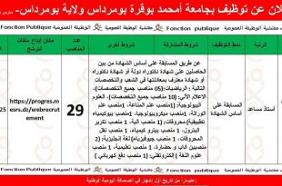 أكمل القراءة »إعلان عن توظيف بجامعة أمحمد بوقرة ولاية بومرداس – مارس 2025