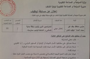 إعلان عن مسابقة توظيف بمديرية السياحة والصناعة التقليدية لولاية الشلف