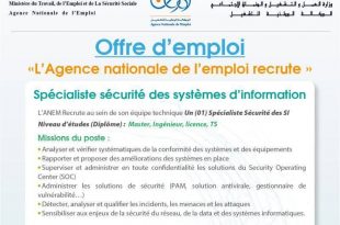 وزارة العمل والتشغيل والضمان الاجتماعي الوكالة الوطنية للتشغيل عرض عمل ads الوكالة الوطنية للتشغيل توظف أخصائي أمن أنظمة المعلومات الوكالة الوطنية للتشغيل توظف ضمن فريقها التقني (01) أخصائي أمن أنظمة المعلومات مستوى الدراسة (الشهادة): ماجستير، مهندس، ليسانس، تقني سامي مهام المنصب: تحليل والتحقق الدوري …