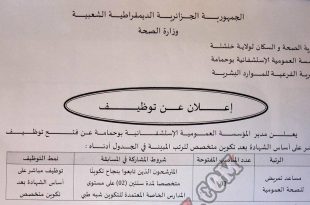 أكمل القراءة »اعلان توظيف بالمؤسسة العمومية للصحة الجوارية راس العيون باتنة