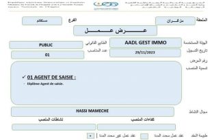 إعلان توظيف Ized El Hennaya تعلن مؤسسة إزاد الحناية عن منصب توظيف أمين (ة) مكتب “شاب أو فتاة “ ads الشروط: الإقامة قريبة .تلمسان السن لا يتجاوز 30سنة . شهادة ليسانس licence على الأقل / شهادة سكرتارية أو الاعلام الالي Bureautique ou TS informatique …