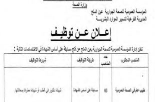 اعلان عن توظيف المؤسسة العمومية للصحة الجوارية بالبرواڨية المدية ads تعلن المؤسسة العمومية للصحة الجوارية بالبرواڨية المدية عن فتح مسابقة توظيف في الرتب المبينة ادناه صيدلي عام في الصحة العمومية عدد المناصب 01 منصب نمط التوظيف: مسابقة على اساس الشهادة نفساني في تصحيح التعبير …