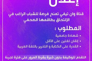 ads إعلان قناة وان تيفي تبحث عن وجوه شابة للانضمام إلى فريقها الصحفي المطلوب: شهادة جامعية إتقان لغتين على الأقل القدرة على الكتابة والتحرير باللغة العربية التقدم للوظيفة بدون خبرة بشرط المرور على فترة تجربة على المهتمين إرسال سيرة ذاتية مرفوقة بفيديو للمترشح (مدته …