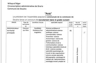 أكمل القراءة »إعلان عن توظيف ببلدية الدويرة ولاية الجزائر