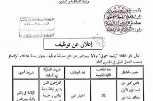 أكمل القراءة »إعلان عن توظيف بدار الثقافة رشيد ميموني – ولاية بومرداس