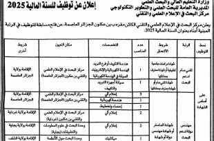 اعلان عن مسابقات توظيف بمركز البحث في الإعلام العلمي والتقني في عدة ولايات: