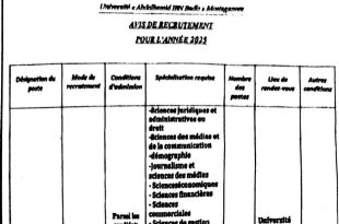 إعلان عن توظيف بجامعة عبد الحميد بن باديس مستغانم