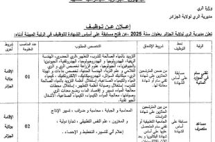 أكمل القراءة »إعلان عن مسابقة توظيف بمديرية الري لولاية الجزائر